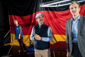Warum hängen in unserem Zuschauerraum so viele Fernseher? Wie kann man riesige Ölgemälde innerhalb von Sekunden verschwinden lassen? Und wie macht man falsche Bärte?